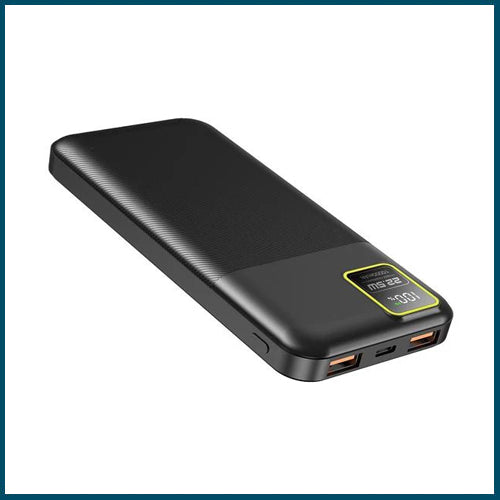The Porodo Blue 10000mAh Quick Charging Power Bank is a compact and portable power bank with high-speed charging capabilities, featuring both USB-A and USB-C output ports for charging multiple devices simultaneously.