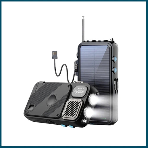 The Powerology PP049 (P-PP049 / PPBCHA49) is a robust, multi-functional 16000mAh solar power bank designed for outdoor activities and emergencies. It combines portable charging capabilities with useful features such as an FM radio, speaker, and integrated lights.
